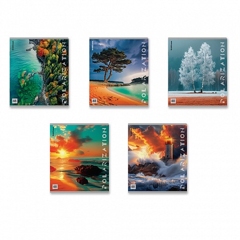 Тетрадь 48л клетка пластик "Polarization" ассорти (5диз) 60г.м2
