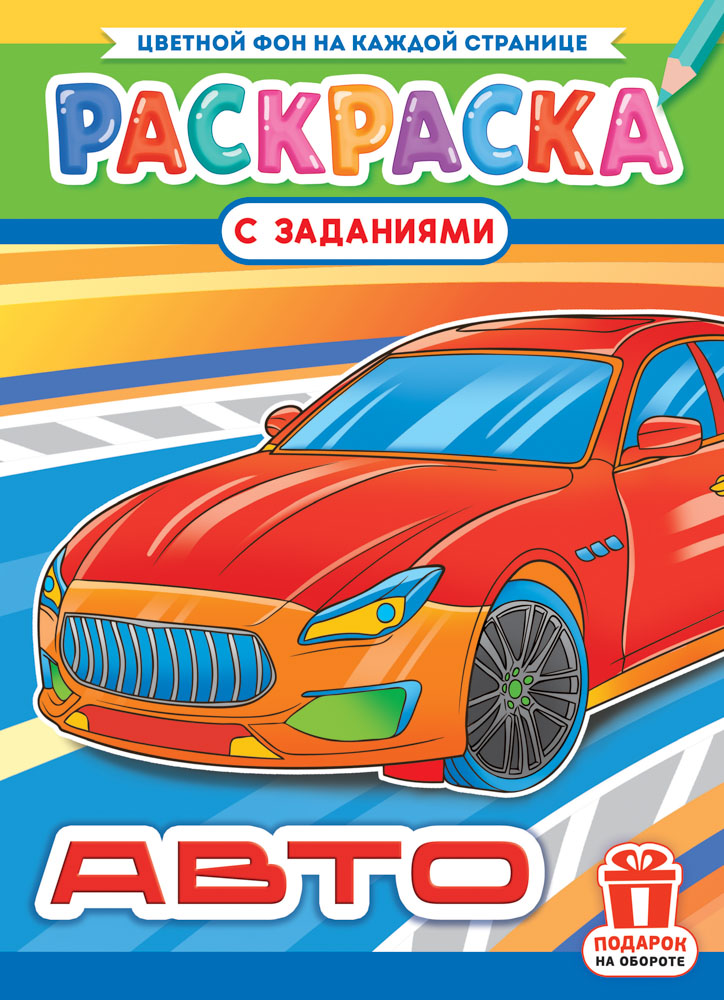 Раскраска А4. "АВТО". Цветной фон.