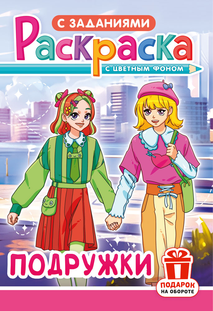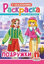 Раскраска А5. "ПОДРУЖКИ". Цветной фон.