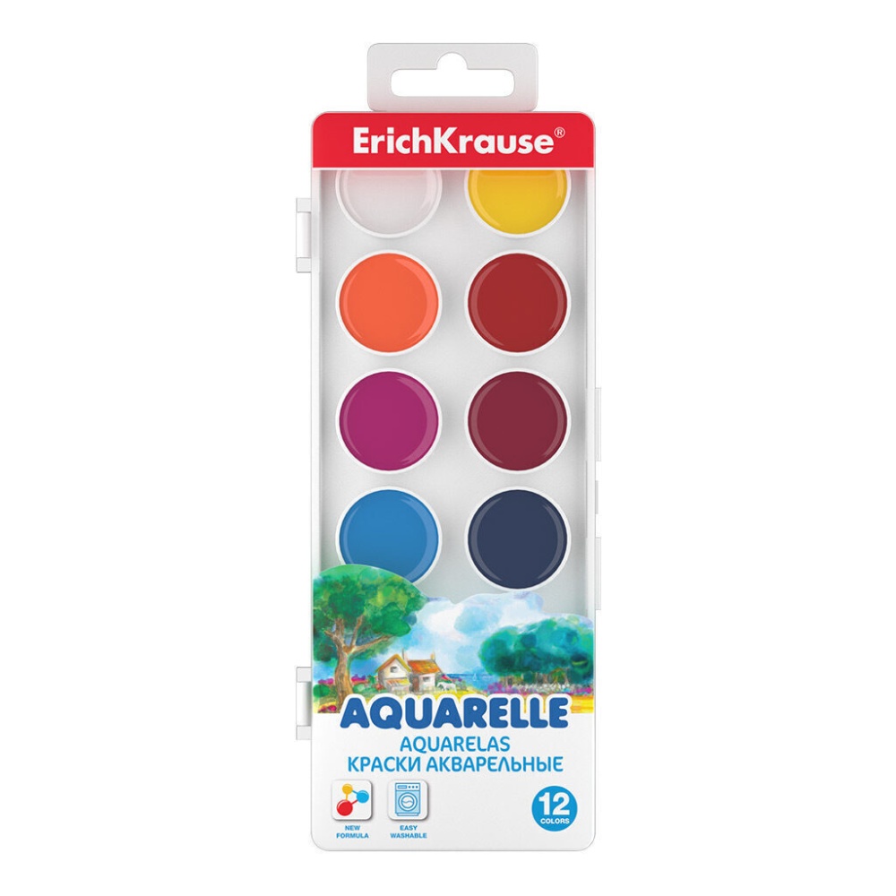Краски акварельные ErichKrause 12 цветов (в пластиковой коробке с европодвесом)