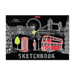 Альбом для эскизов на клею ErichKrause Great Britain, А4, 30 листов, бумага черная