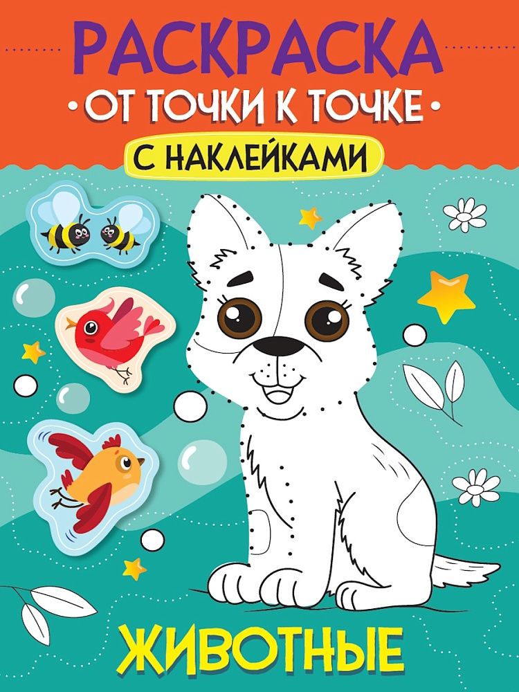 Раскраска "От точки к точке с наклейками. Животные" А4 12стр.