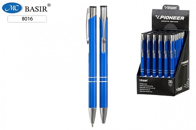 Автоматическая шариковая ручка с чернилами на масляной основе: "VINSON PIONEER"; металлический синий корпус; толщина пишущего узла 0,7 mm, цвет чернил-синий.