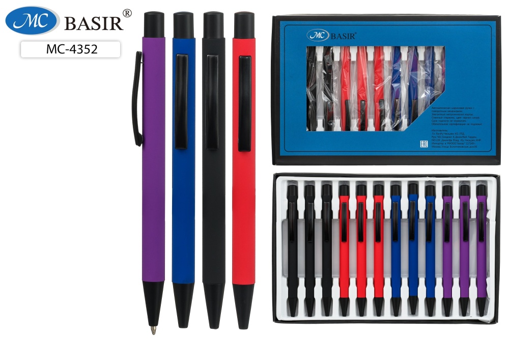 Ручка автоматич. Металлическая. Цветной корпус Soft, ассорти. Синяя