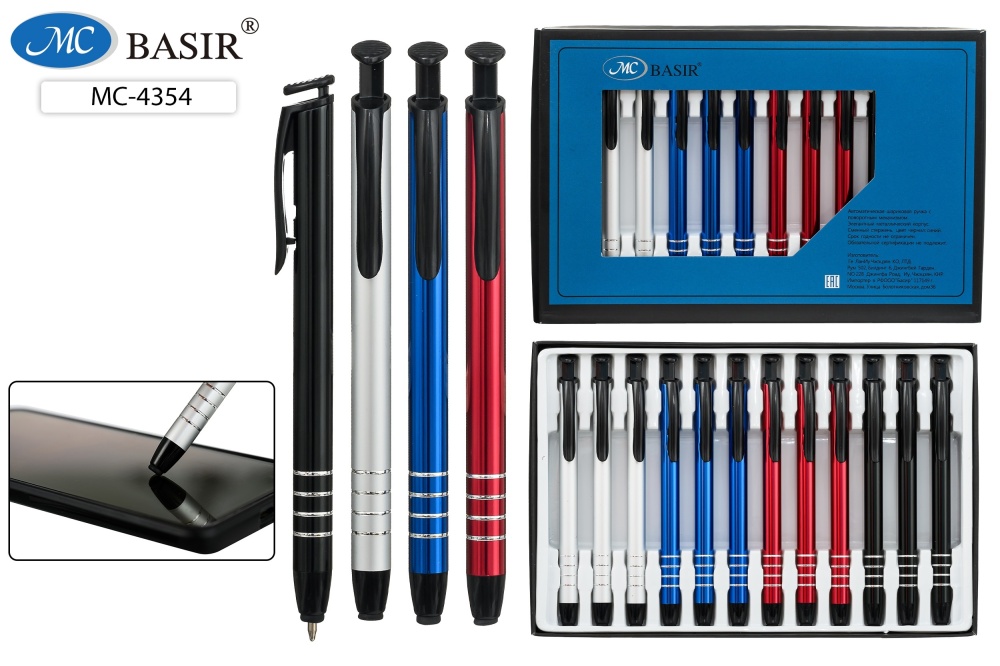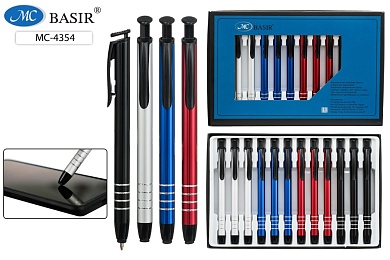 Ручка автоматич, с боковым отжимом. Металлическая. Цв.корпус, ассорти. Синяя