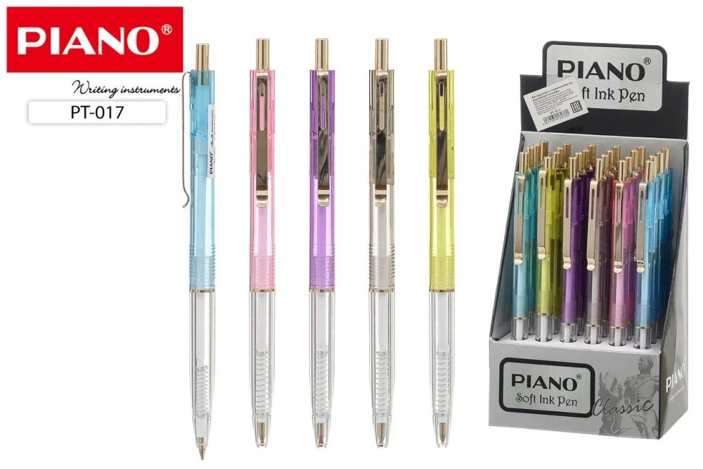 Ручка шариковая автоматич.на масляной основе. "Piano", прозрачный цветной корпус, клип золотистого цвета, пиш.узел 0,7 мм