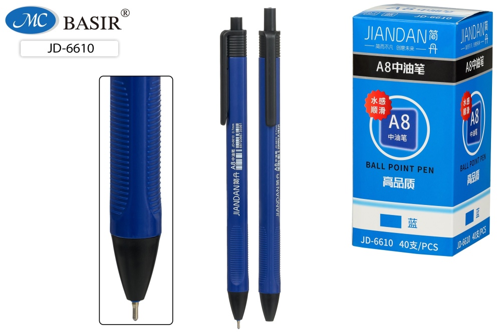 Ручка шариковая автоматич. На масляной основе. Синий корпус треуг.формы. 0,7 мм. Синяя