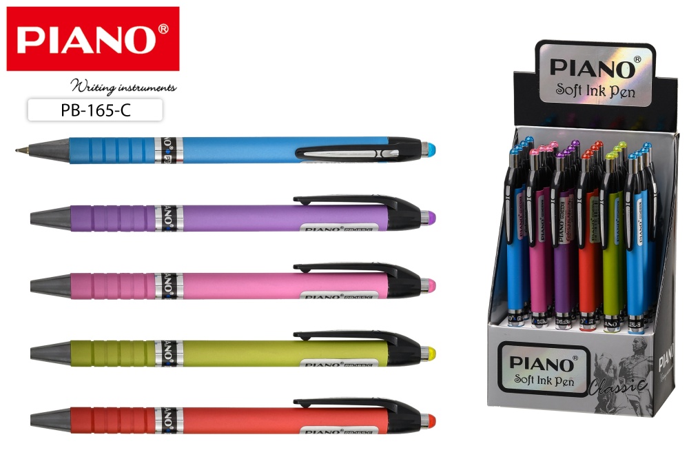 Ручка шариковая, автоматич. "Piano" матовый цветной корпус, ассорти. Рельефный держатель