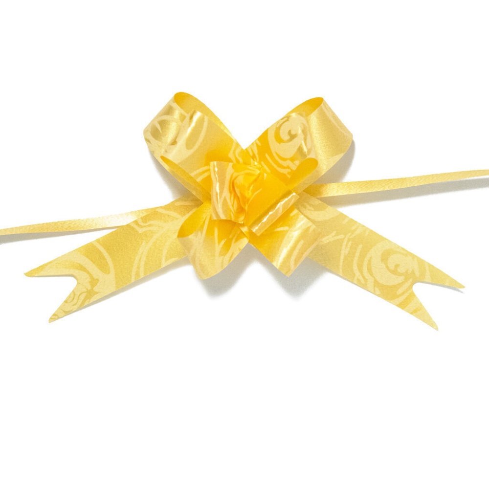 Бант подарочный затягивающийся 4см*10мм, 20см, рисунок ассорти, ЖЁЛТЫЙ 10шт/уп