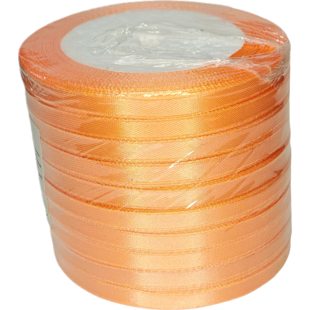 Лента упаковочная атласная 6мм, 22 м персик (10шт/уп)
