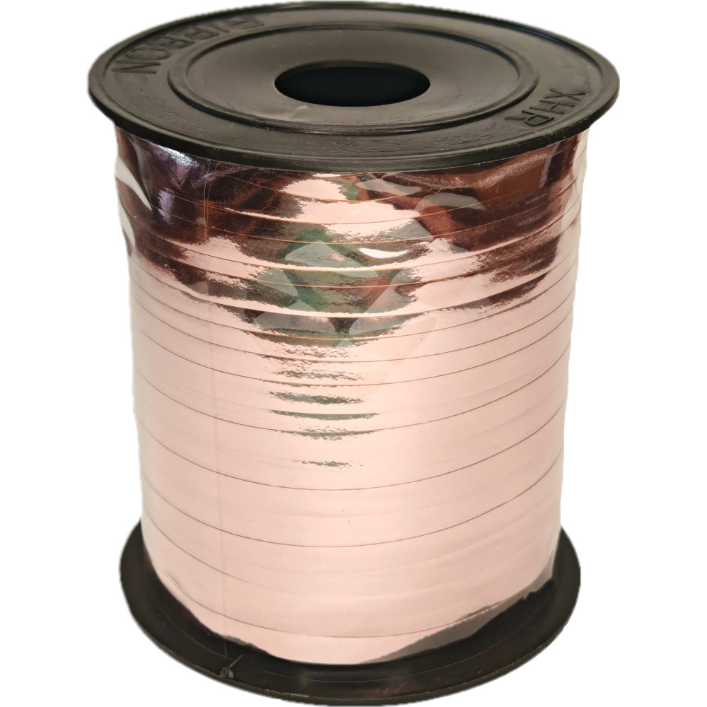 Лента упаковочная ПВХ 5мм*228м, металлик, розовая