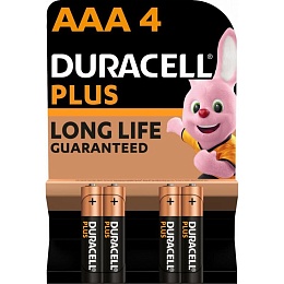 Щелочные батарейки Duracell PLUS размера AAA подходят для вспышек фотоаппаратов, для бритв, пультов управления, беспроводных контроллеров и других бытовых устройств. Гаджеты работают на 100 % дольше, чем на аналогичных батарейках других производителей. В пачке 4 штуки достаточно для одного или двух устройств.