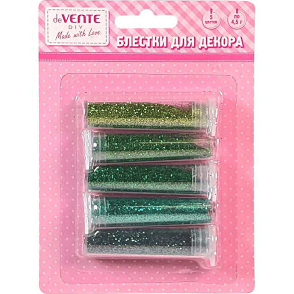 Блестки (глиттер) для декорирования "deVENTE. Оттенки зеленого" 5 цветов по 4,5 г, в картонном блистере