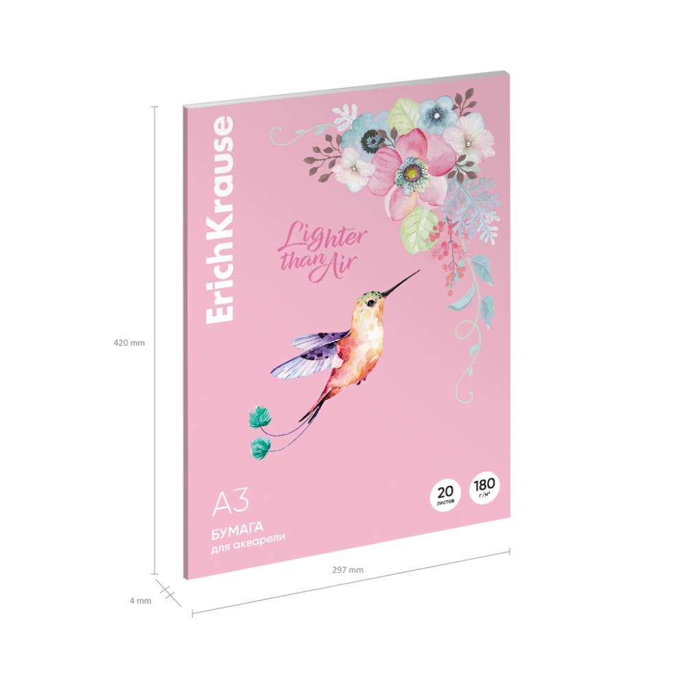Бумага для акварели в картонной папке ErichKrause Колибри, А3, 20 листов