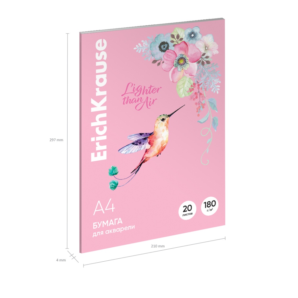 Бумага для акварели в картонной папке ErichKrause Колибри, А4, 20 листов