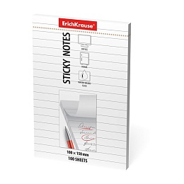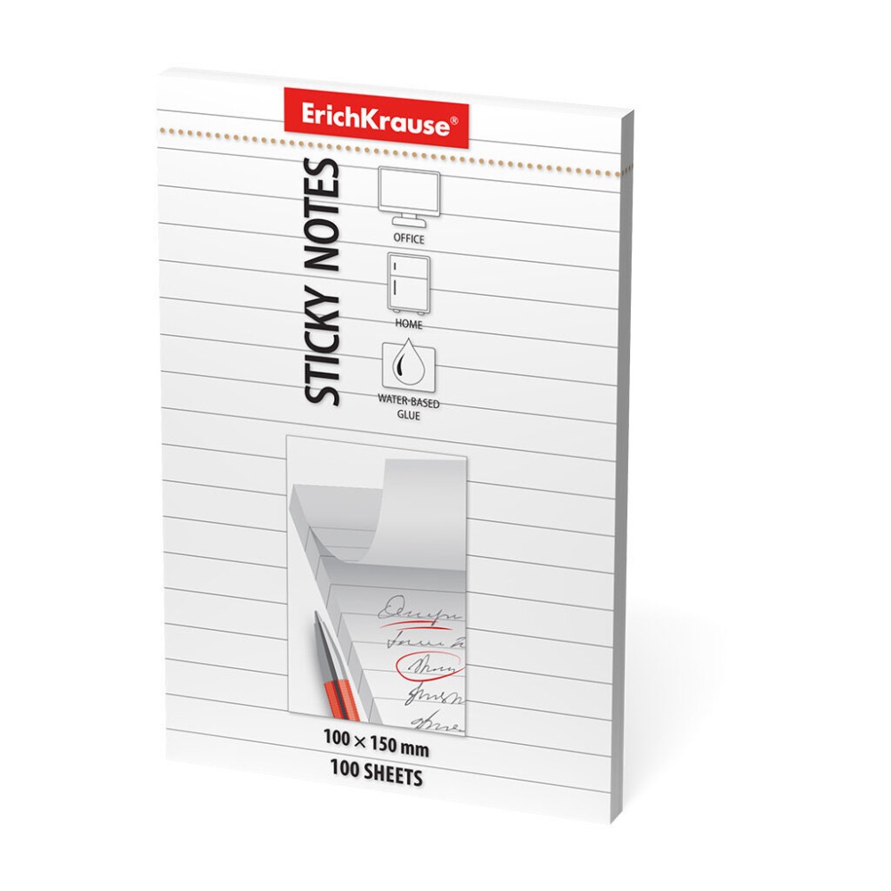 Бумага для заметок с клеевым краем ErichKrause 100х150 мм, 100 листов, белый в линейку