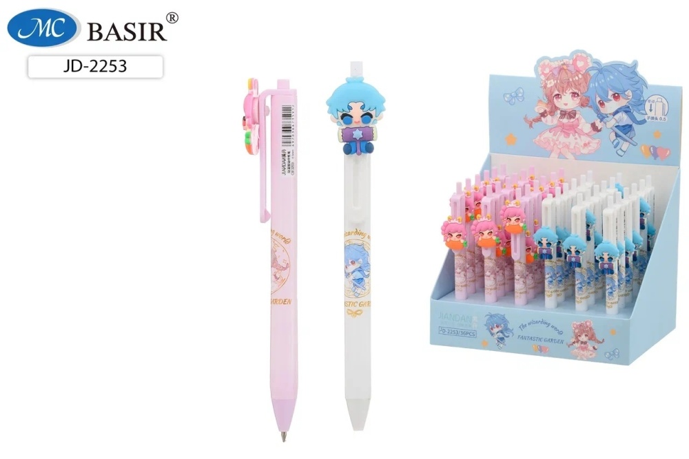 Ручка автоматич. "FANTASTIC GARDEN"; цв.корпус с рисунком. клип с насадкой-мальчик, девочка, 0,5 mm. Синяя