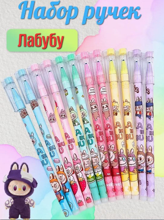 Ручка детская. Стираемая. ЛАБУБУ. С колпачком. 0,5 мм. Ассорти