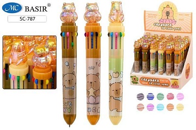 Авторучка 10-ти цветная: "КАПИБАРА"; детская; цветной корпус с рисунком .ассорти., 0,7 mm.