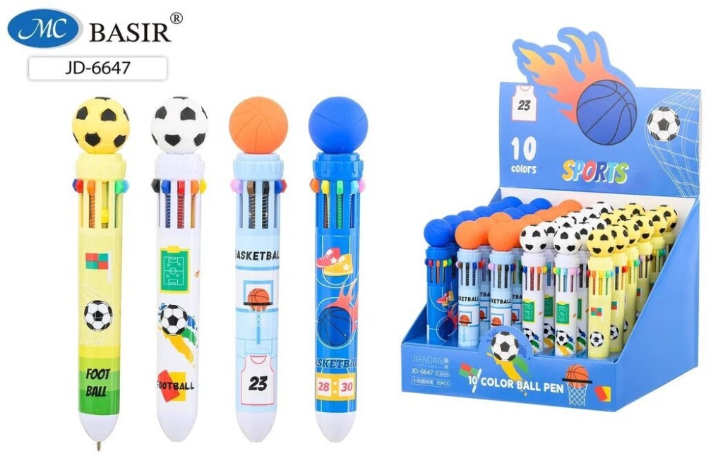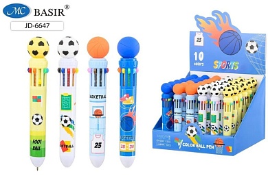 Ручка автоматич. 10-цветная. "Sports". Наконечник - мячи, в ассортименте. 0,5 мм.