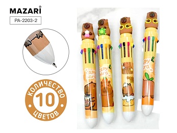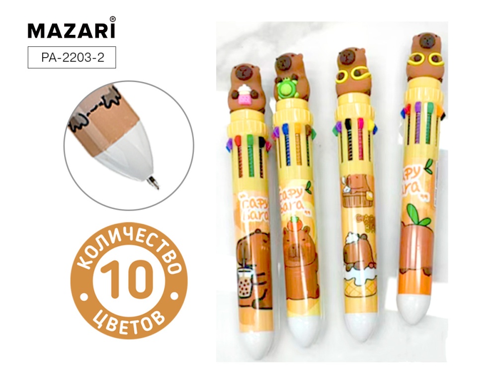 Ручка шариковая автоматич. CAPYBARA, 10-цветная. 0.7мм, цв.пластик.корпус 4 дизайна