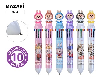 Ручка шариковая автоматич. ЗУБАСТИК (Лабубу), 10-цветная, 0.7мм, цв.пластик.корпус, 4 дизайна ассорти