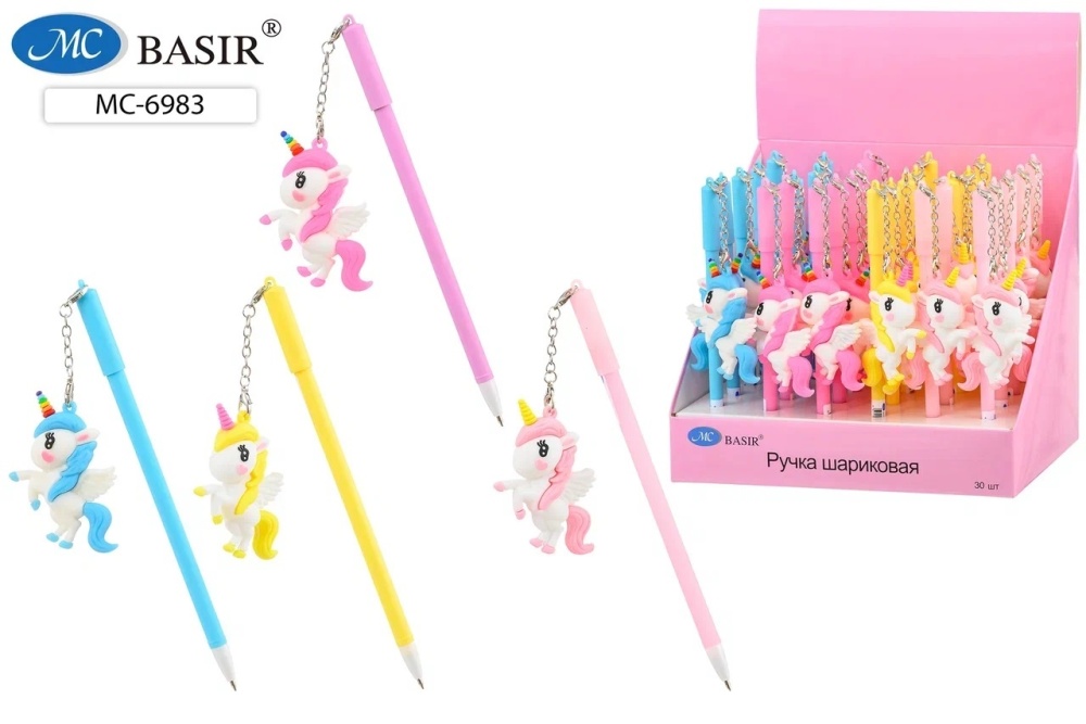 Ручка шариковая "ЕДИНОРОГ"; цв.корпус, колпачок с брелоком 7,5 см, синяя