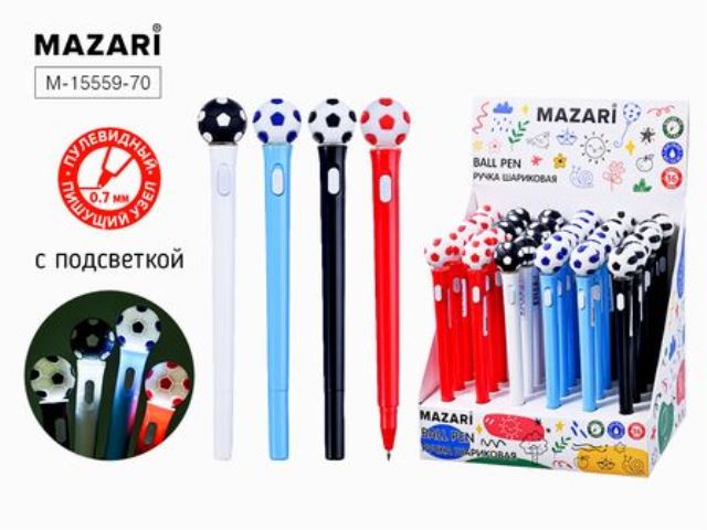Ручка шариковая с подсветкой. МЯЧИ. 0,7 мм. Пластик.корпус. Ассорти. Синяя