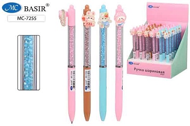 Ручка шариковая с поворотным механизмом. "ЖИВОТНЫЕ"; клип с насадкой, корпус цветной.прозрачн. с наполнителем-стразы, синяя.