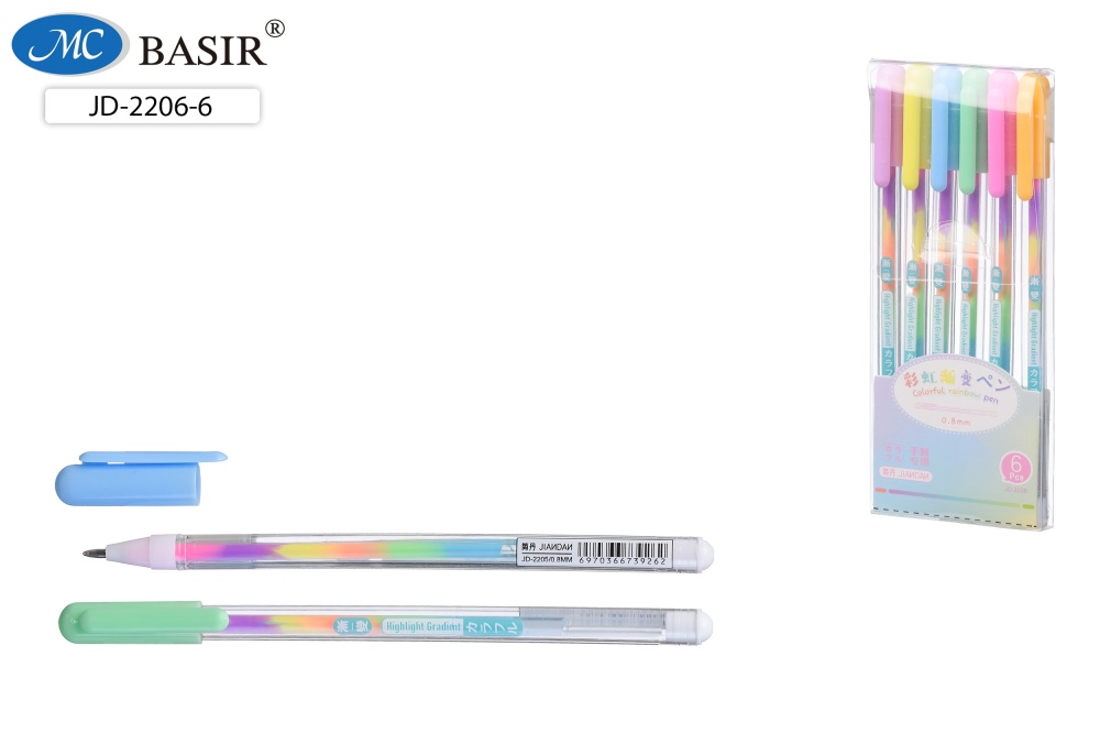 Ручки гелеве многоцветные неоновые. Набор 6 цв. Радужный стержень. 0,8mm
