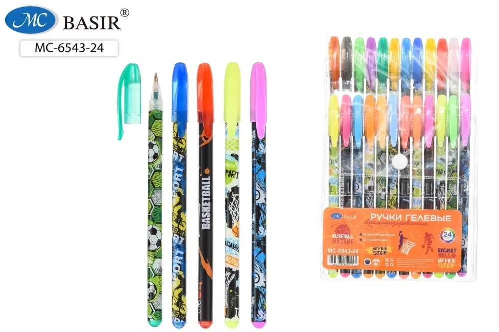 Ручки гелевые. "СПОРТ". Набор 24 цв. Ароматизированные, 12 с блёстками, 12 флуоресцентных.