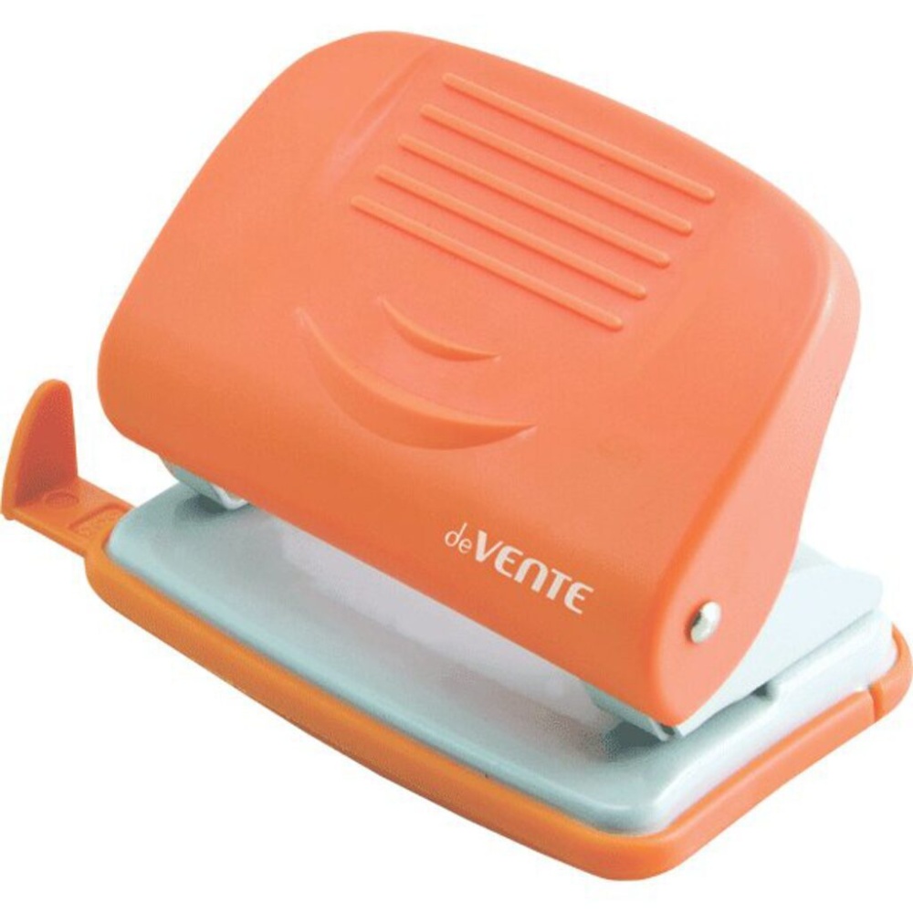 Дырокол deVENTE 20 лист, пластик, линейка, оранжевый НЕОН