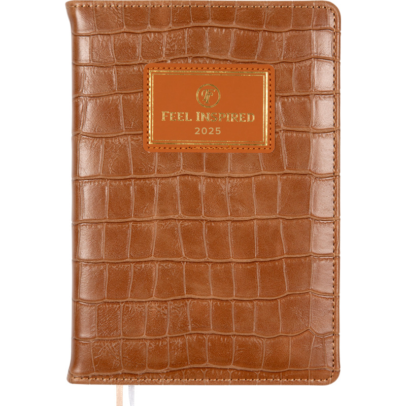 Ежедневник датированный 2025 "deVENTE. Grande" A5 (145 ммx205 мм) 336 стр, кремовая бумага 70 г/м, печать в 2 краски, твердая обложка из искусственной кожи с поролоном, отстрочка, аппликация, тиснение фольгой, черный форзац, перфорация, закругленные уголки, 2 ляссе, в подарочной коробке, светло-коричневый