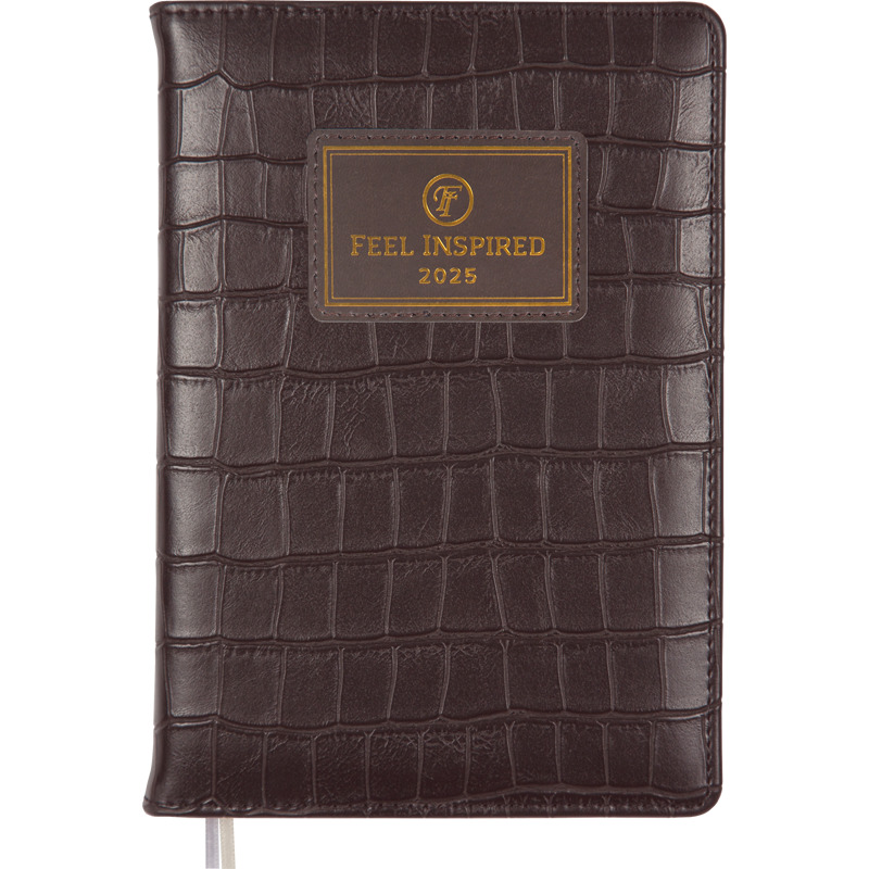 Ежедневник датированный 2025 "deVENTE. Grande" A5 (145 ммx205 мм) 336 стр, кремовая бумага 70 г/м, печать в 2 краски, твердая обложка из искусственной кожи с поролоном, отстрочка, аппликация, тиснение фольгой, черный форзац, перфорация, закругленные уголки, 2 ляссе, в подарочной коробке, темно-коричневый