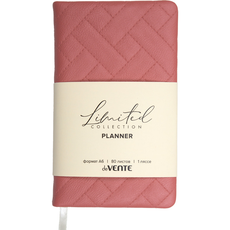 Планинг карманный недатированный "deVENTE. Elizabeth" (100 ммx170 мм) 160 стр, кремовая бумага 70 г/м, печать в 1 краску, твердая обложка из искусственной стеганной кожи с поролоном, перфорация, закругленные уголки, 1 ляссе, в термоусадочной пленке, нежно-коралловый