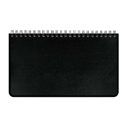 Планинг недатированный ESCALADA, 190х110 мм, 68 л., арт. 70754/ 20 БЬЯНЧИНИ ЧЁРНЫЙ (кожзам: твёрдый переплёт, материал обложки: искусственная кожа "Бьянчини"; способ крепления блока: евроспираль открытая; вн. блок: 68 л., белый офсет 70 г/м, печать в одну краску (линия), справочный материал: нет; перфорация углов блока: нет; форзац: печать пантоном, персонализация возможна: да; индивидуальная упаковка: промостикер + ПЭТ-пакет)