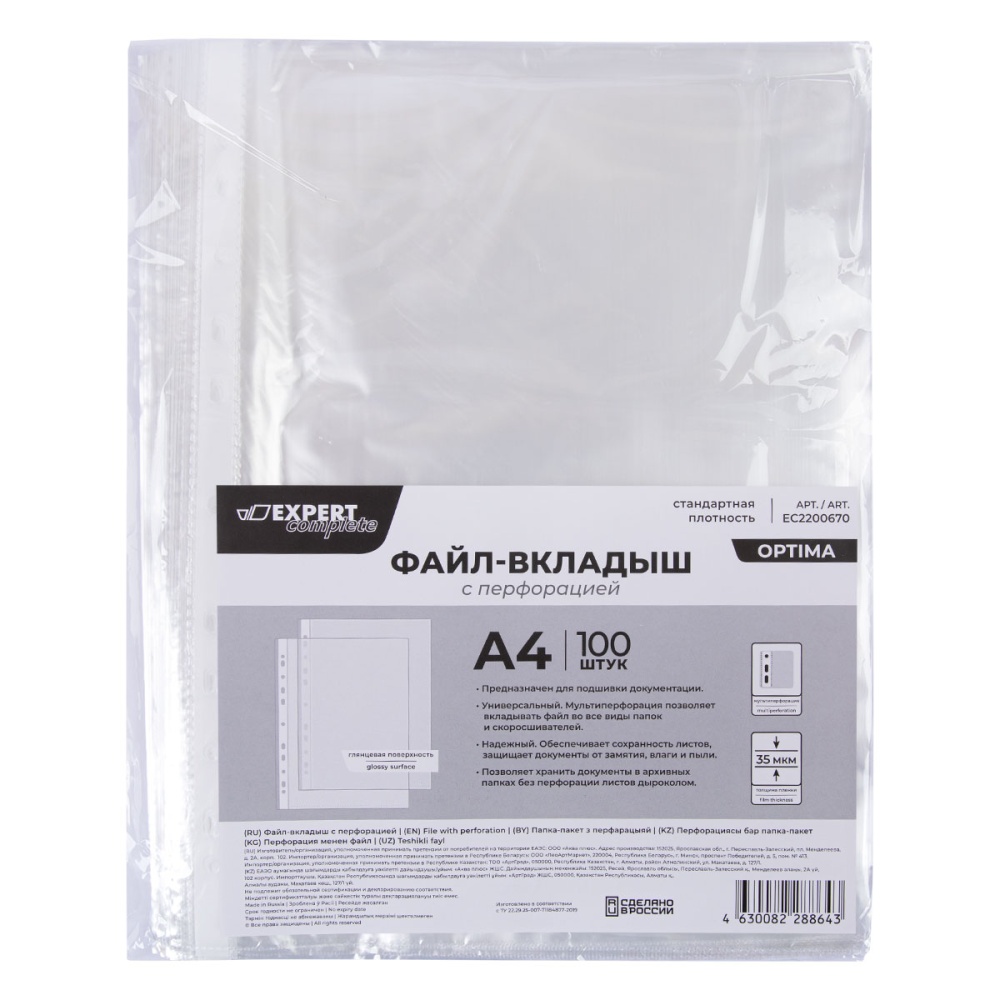 Файл с перфорацией А4 / 0,035мм / 100 шт/уп., глянцевые, OPTIMA