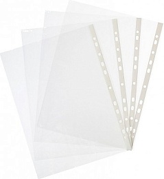Файл-вкладыш формата А4, предназначенный для хранения и защиты печатных документов. Поверхность прозрачная. Изготовлен из полипропиленовой пленки (толщина 40 мкм). Боковая перфорация подходит для разных типов скоросшивателей. В упаковке содержится 100 файлов. Каждый файл-вкладыш вмещает около 40 листов стандартной плотности. Стоимость указана за упаковку.