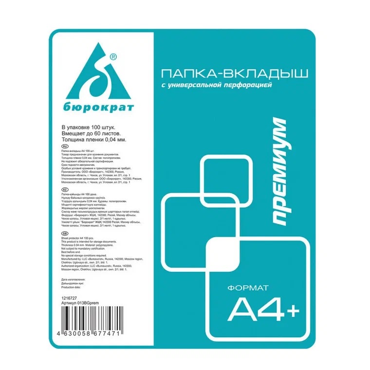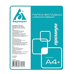 Файл с перфорацией А4+ премиум, 0,04мм / 100 шт/уп., тиснен.