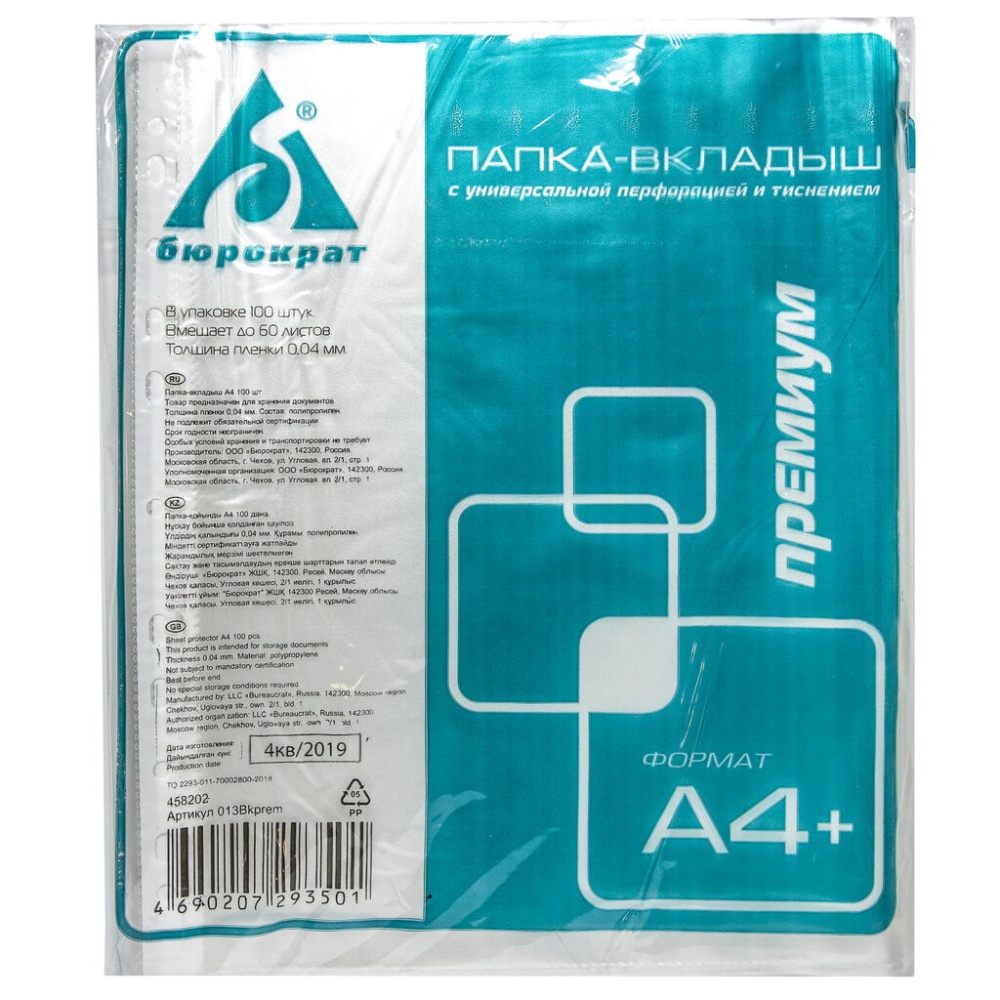 Файл с перфорацией А4+ премиум тисн./ 0,04мм / 100 шт/уп., тиснение