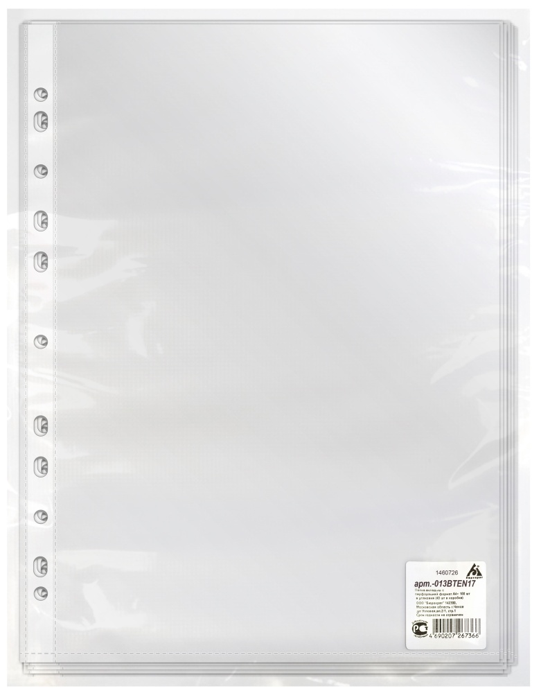 Файл с перфорацией А4 стандарт / 0,017мм / 100 шт/уп., глянцевые