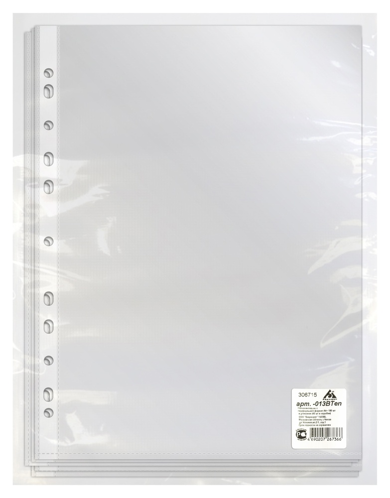 Файл с перфорацией А4 стандарт / 0,023мм / 100 шт/уп., глянцевые