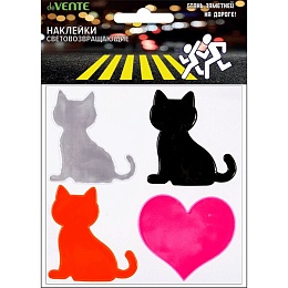Наклейки световозвращающие "deVENTE. SAFE MODE Коты" ПВХ, 120x120 мм, 4 шт, ассорти цветов, в пластиковом пакете с подвесом