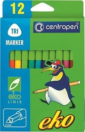 Фломастеры 12цв "Centropen. Eco trio", треуг.захват, с пищевыми красителями