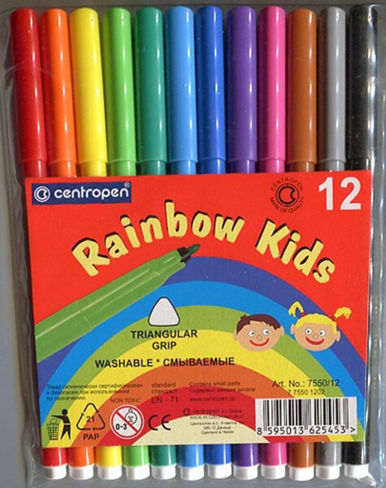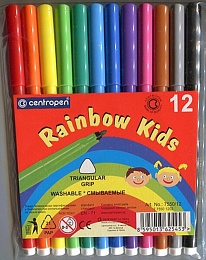 Фломастеры 12цв "Centropen rainbow kids", треуг.захват, пластик.уп-ка