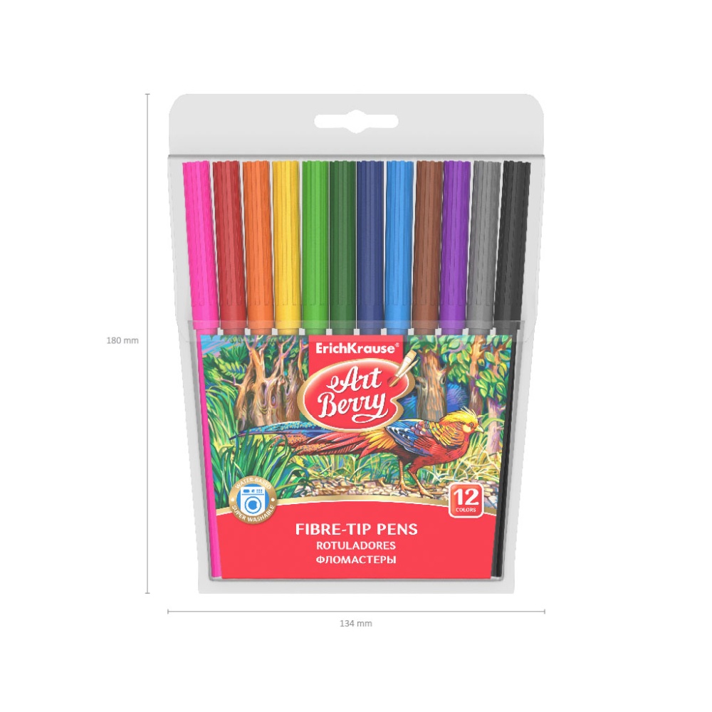Фломастеры ArtBerry Суперлегко смываемые 12 цветов (в футляре с европодвесом 12 шт)