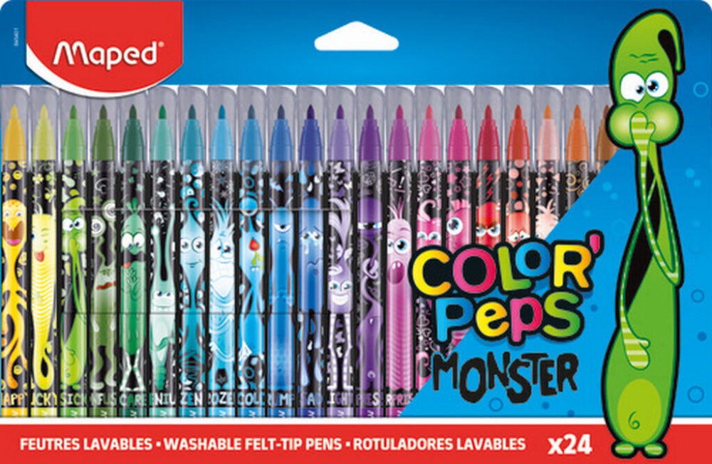 Фломастеры 24цв "Maped. Color peps monster", с заблокир. пишущ.узлом, смываемые