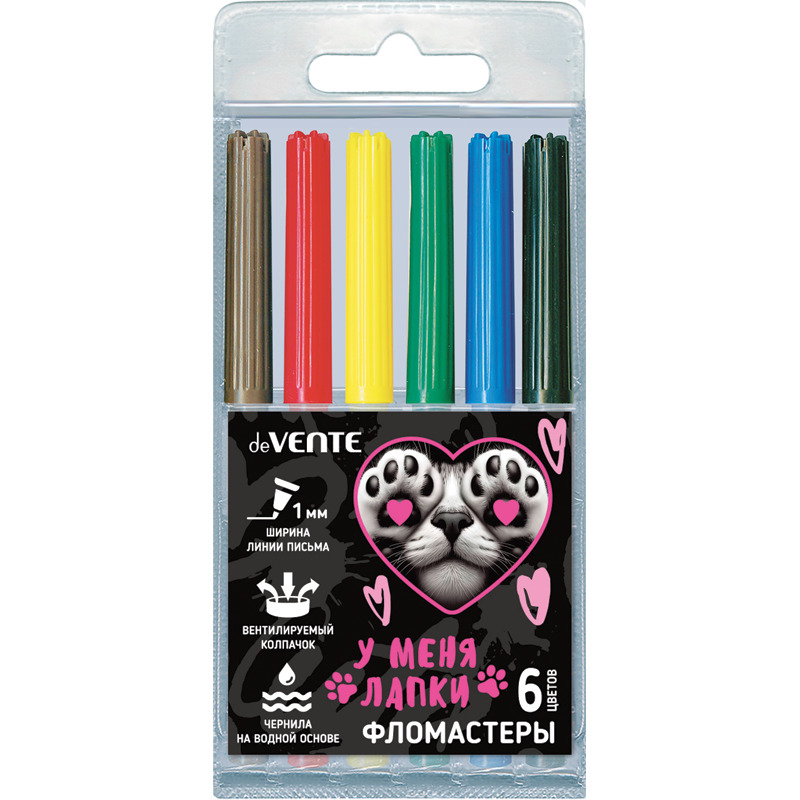Фломастеры "deVENTE. У меня лапки" 06 цветов с вентилируемым колпачком, в пластиковом блистере