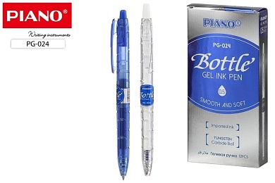 Ручка гелевая автоматич. "Piano Bottle". Прозр.корпус с насечкой. Синяя