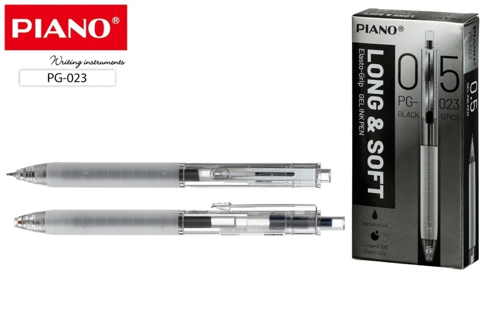 Ручка гелевая автоматич. PIANO LONG&SOFT. Прозр.корпус. Игольч.наконечник, 0,5 мм. Чёрная